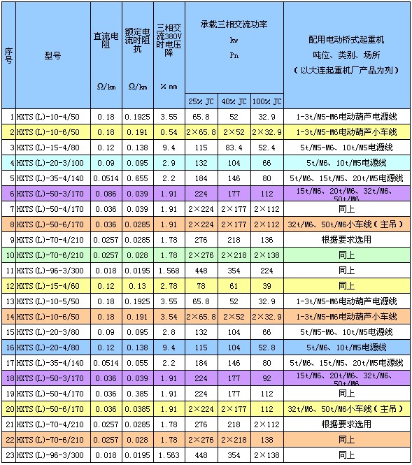 5、HXTS、HXTL(DHG)系列產品適用于電動葫蘆、電動橋式起重機、龍門式起重機、堆垛機、移動式電動工具等移動受電設備,工業(yè)產品的自動生產線、檢測線、廠礦、車間的固定敷設母線。