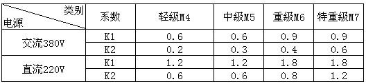 A:其它負載電流 K1、K2:轉換系數(shù)(電流轉換系數(shù)如下表)